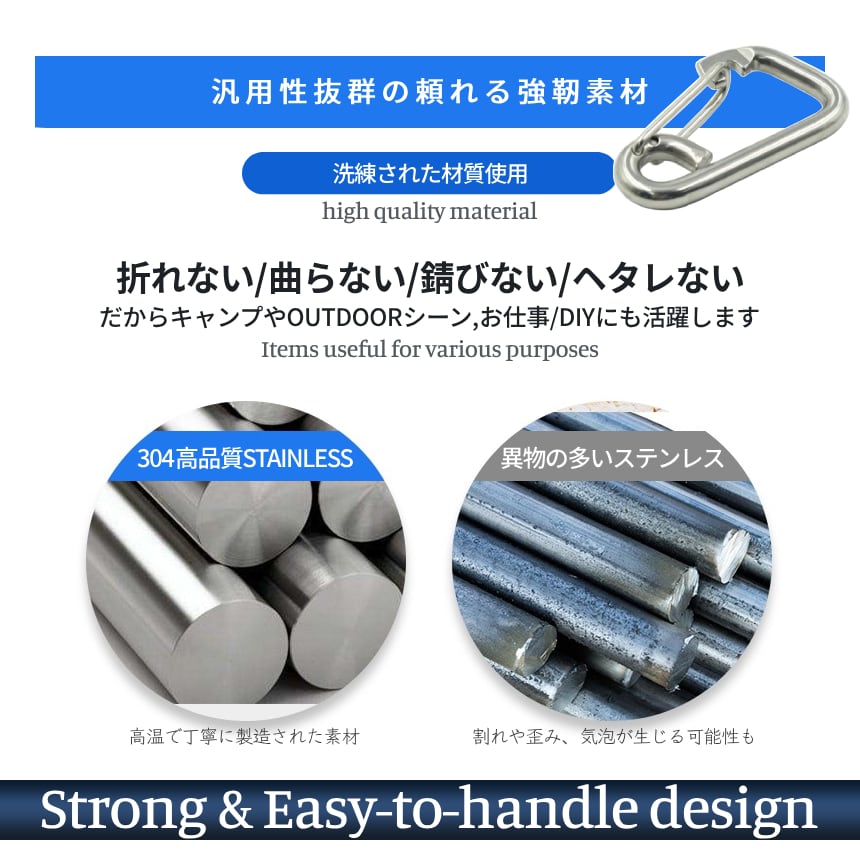 \汎用性抜群のステンレス性カラビナ お得10個セット/