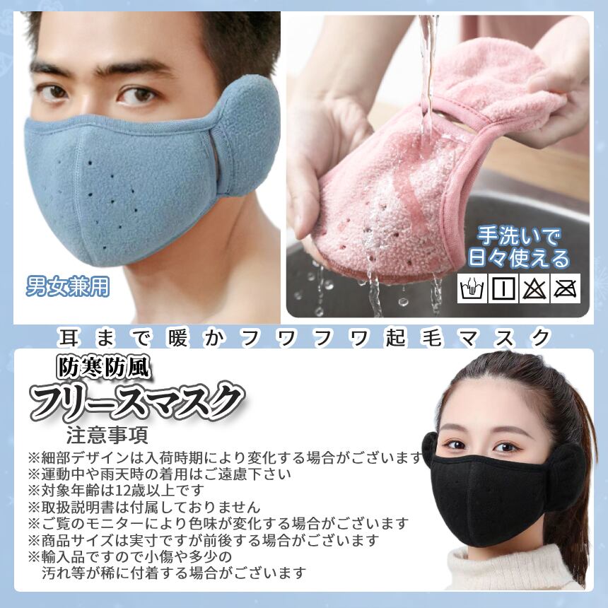 耳までもしっかりカバーできるフリース素材の秋冬マスクです。
