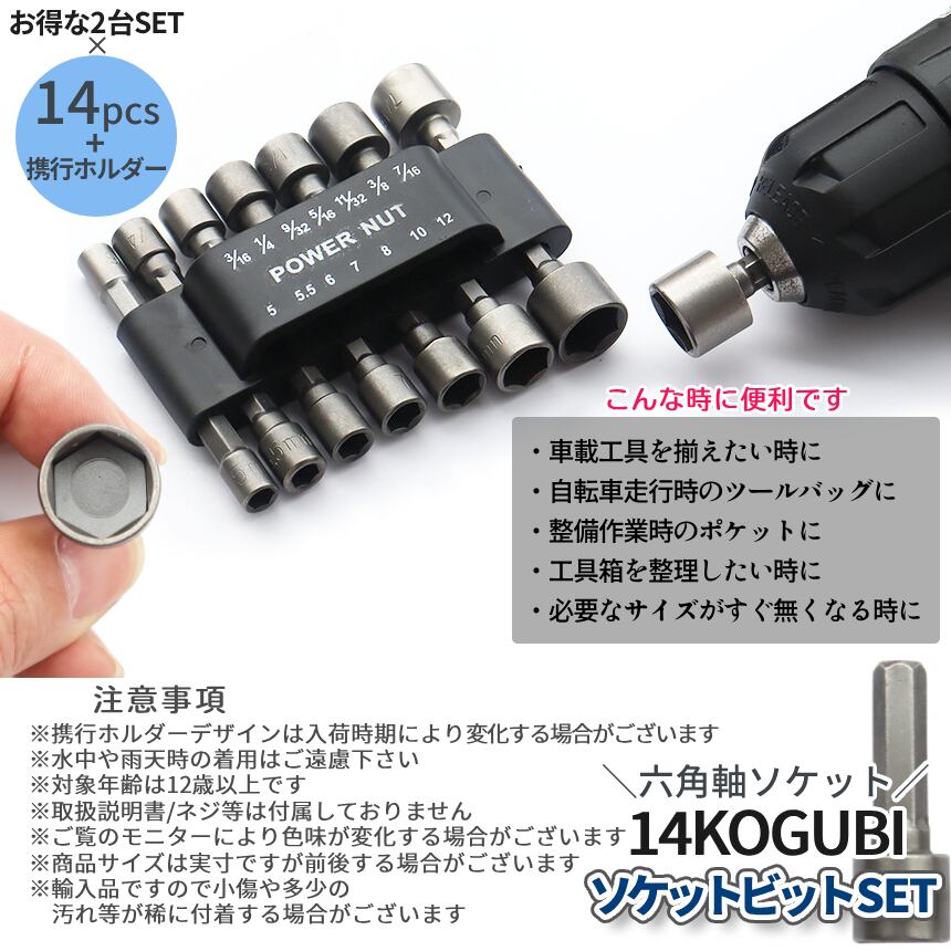 ソケットアダプター 14本 2セット 六角シャンク 六角軸 6.35mm ソケット ビット mm inch ミリ インチ 電動ドライバー インパクト 工具 コンパクト 2-14KOGUBI