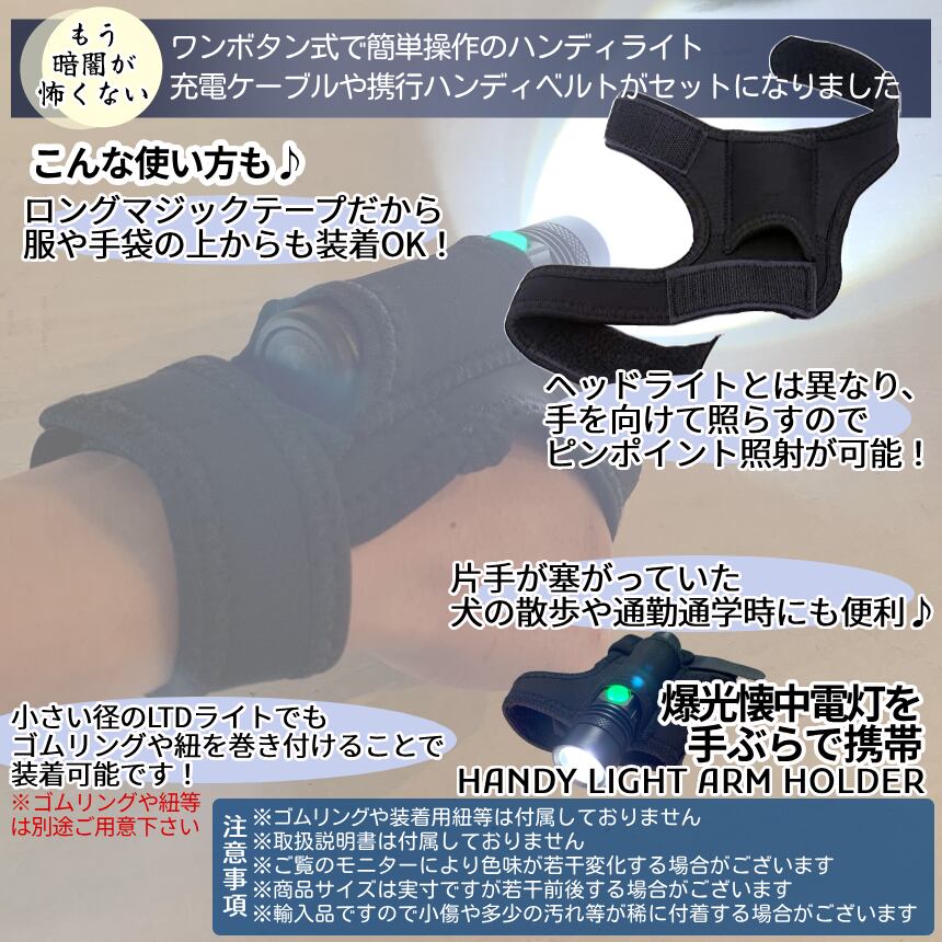 懐中電灯 LED ライト LED懐中電灯 ライトホルダー セット 充電式 ハンディ 携行セット ホルダー ハンズフリー 夜間 散歩 防犯 災害 警告 腕 手首 登山 RAISET-B
