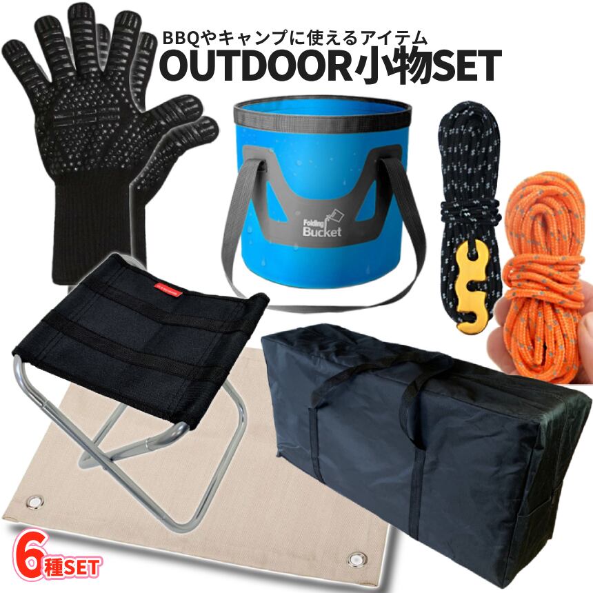 アウトドア 小物 6種 バケツ イス ガイドロープ 耐火手袋 防火シート コンロ収納バッグ チェア ガイロープ2色 収納 地面シート BBQ キャンプ CAMPKOSET