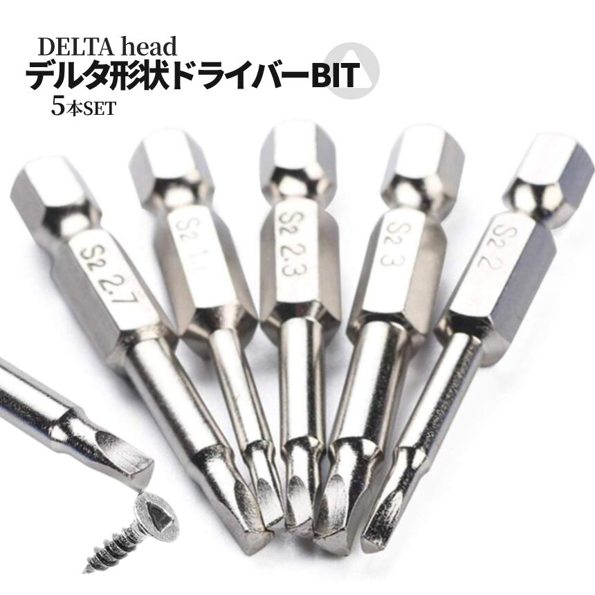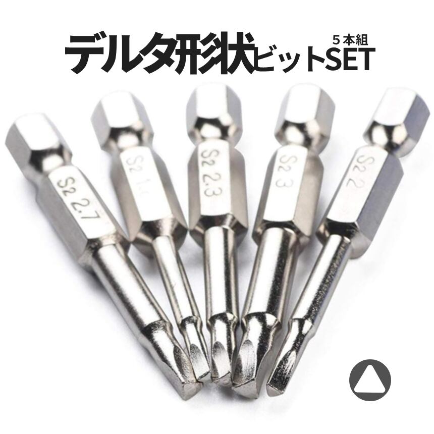 三角ドライバー ドライバー ビットセット 5本セット 三角ネジ 三角 デルタ ドライバービット 三角形 ビット 六角軸 6.35mm ネジ 電動ドライバー 工具 DELDORA