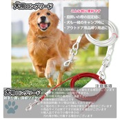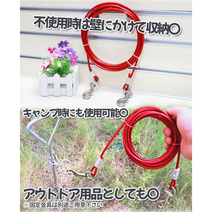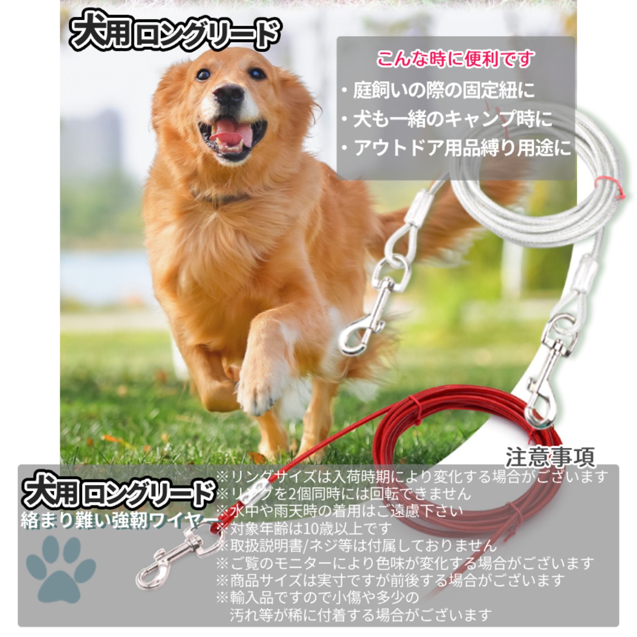 犬用 ロングリード 5m ワイヤーリード 係留 リード ワイヤー ランナーケーブル 絡まりにくい 外飼い 公園 キャンプ 携帯 犬用品 ドッグ シルバー レッド LONGLEE