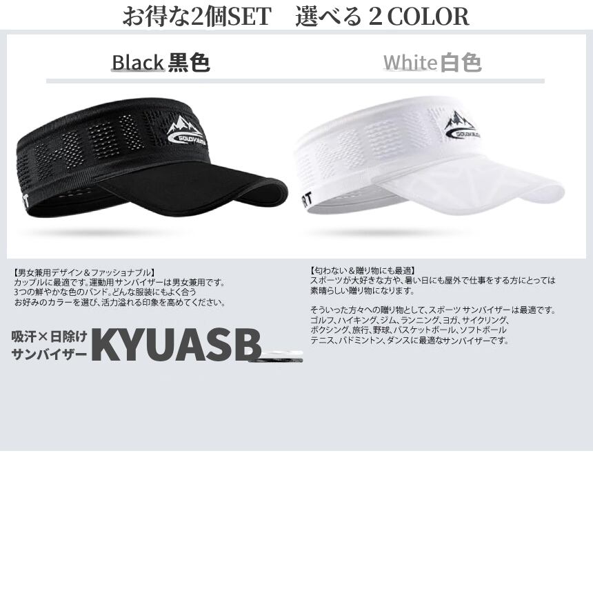 スポーツ用 サンバイザー UVカット 伸縮 吸汗 フィット 2個組 ゴルフ ジョギング 日除け アウトドア ヘッドバンド ブリム キャップ バイザー 2-KYUASB