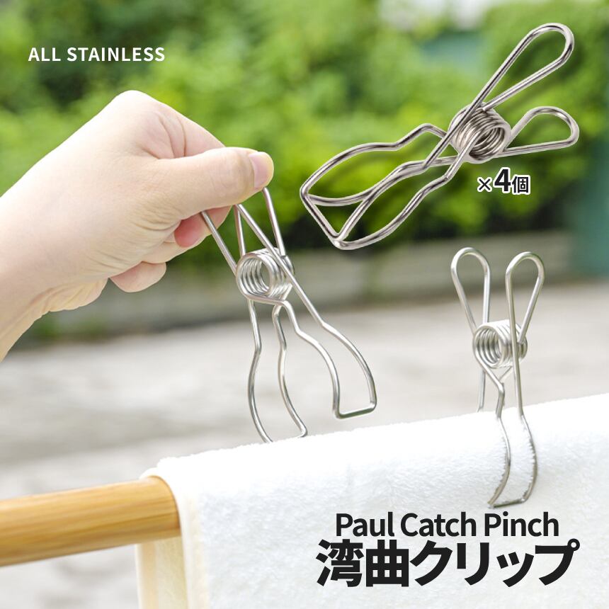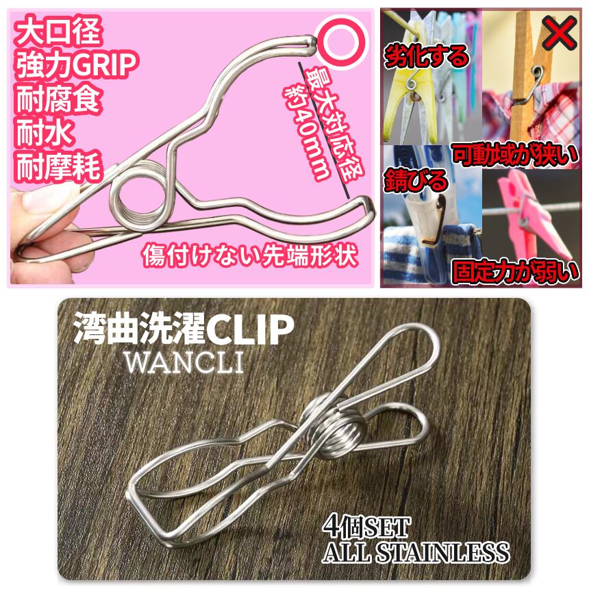 ちょっと曲った ステンレス 洗濯バサミ 4個入 洗濯 クリップ ピンチ ガッチリ 強力固定 ピンチ 部屋干し 物干し竿 収納 ポール ハンガー 取り付け 簡単 WANCLI