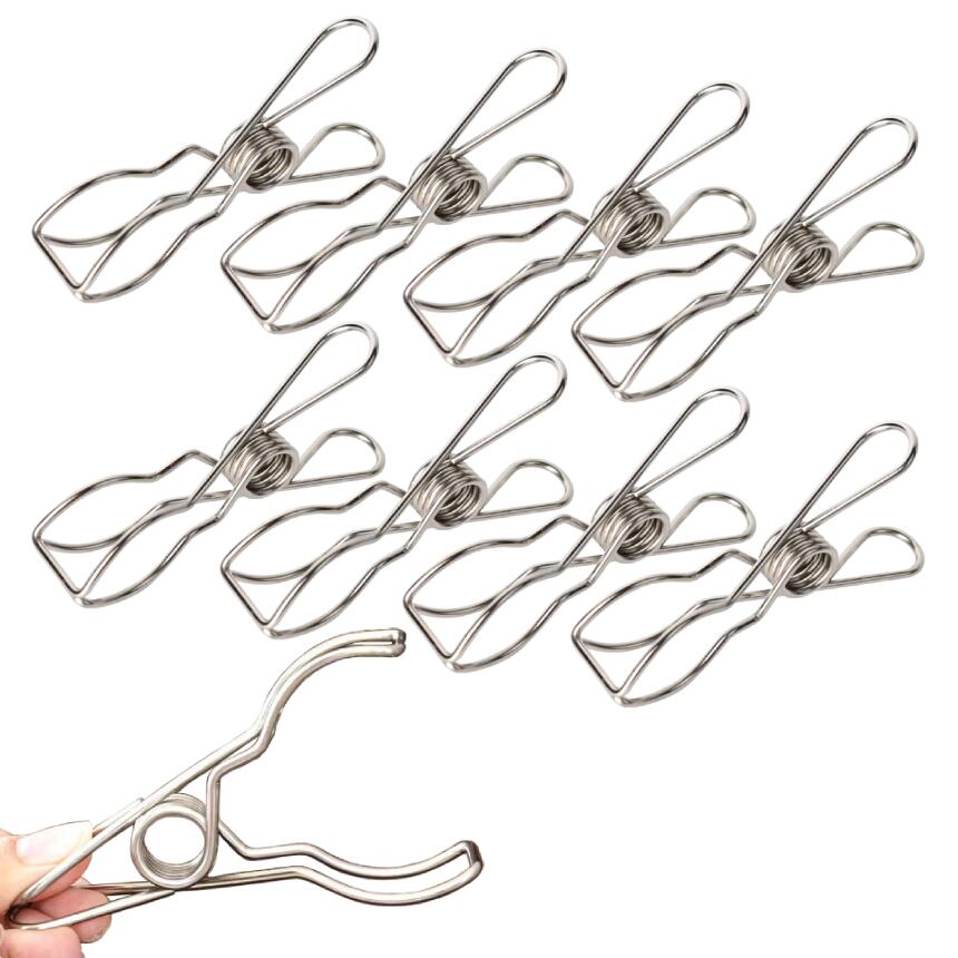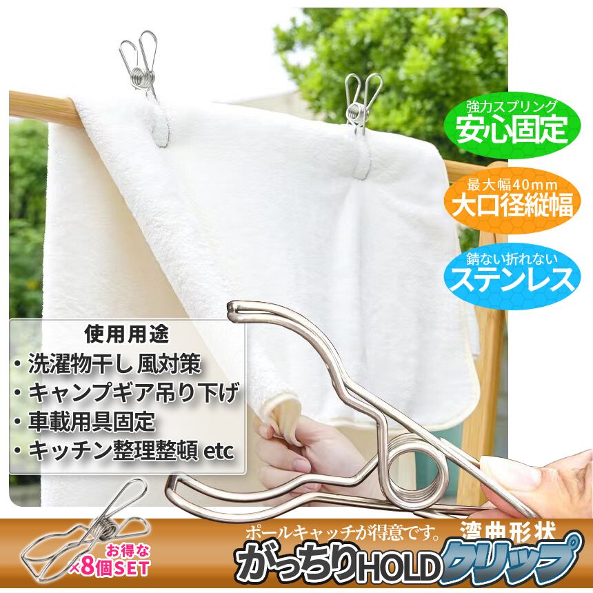 ちょっと曲った ステンレス 洗濯バサミ 8個入 洗濯 クリップ ピンチ ガッチリ 強力固定 ピンチ 部屋干し 物干し竿 収納 ポール ハンガー 取り付け 簡単 2-WANCLI