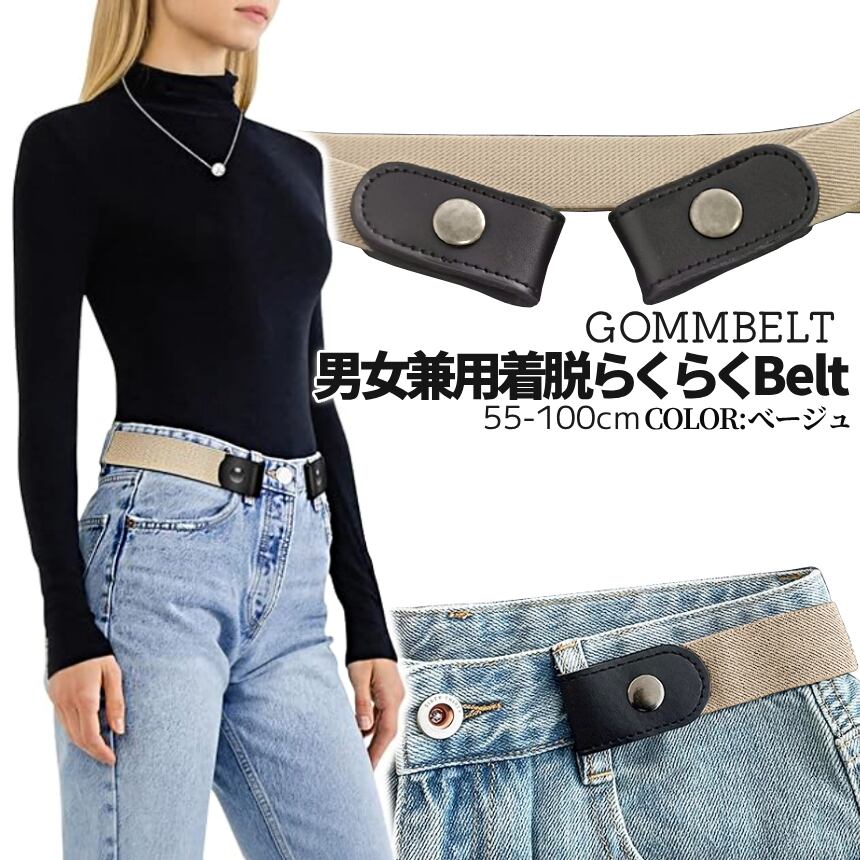 穴なし ゴムベルト ベージュ 伸縮 ゴム ベルト 2way レディース 着脱簡単 メンズ お腹 ウエスト 大人 ビジネス カジュアル 55cm 100cm ファッション GOMMBELT-BE