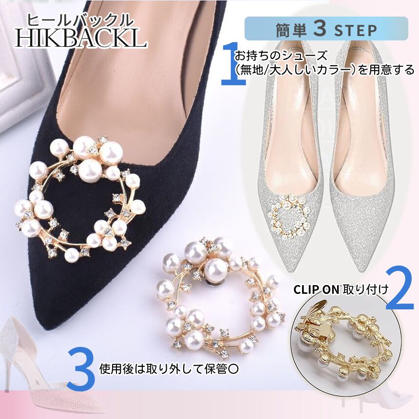 ヒール クリップ バックル パンプス パール ブライダル用 装飾 靴 シューズ チャーム ラインストーン ドレス 結婚式 アクセサリー レディース HIKBACKL-A