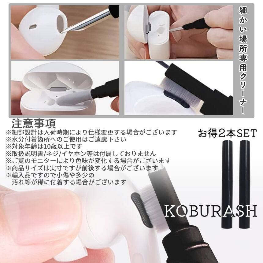 ペン型 ミニブラシ 2本 黒 クリーニング Bluetoothイヤホン 多機能 クリーナー ワイヤレスイヤホン掃除 隙間 掃除 カメラ 携帯電話 ソフトブラシ KOBURASH
