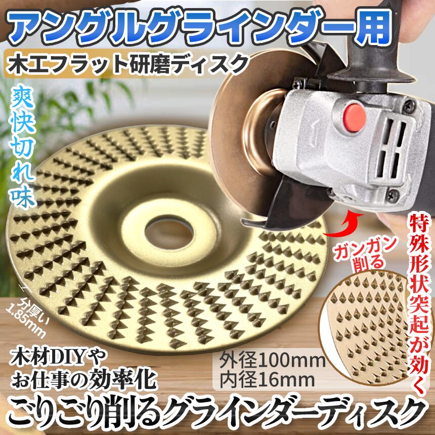 木工用研磨ディスク ゴールド 薄型 アングルグラインダー フラット グラインダー 研削 グラインダーディスク 径100mm 穴16cm DIY 木彫り 木工 GORICA-GD-US
