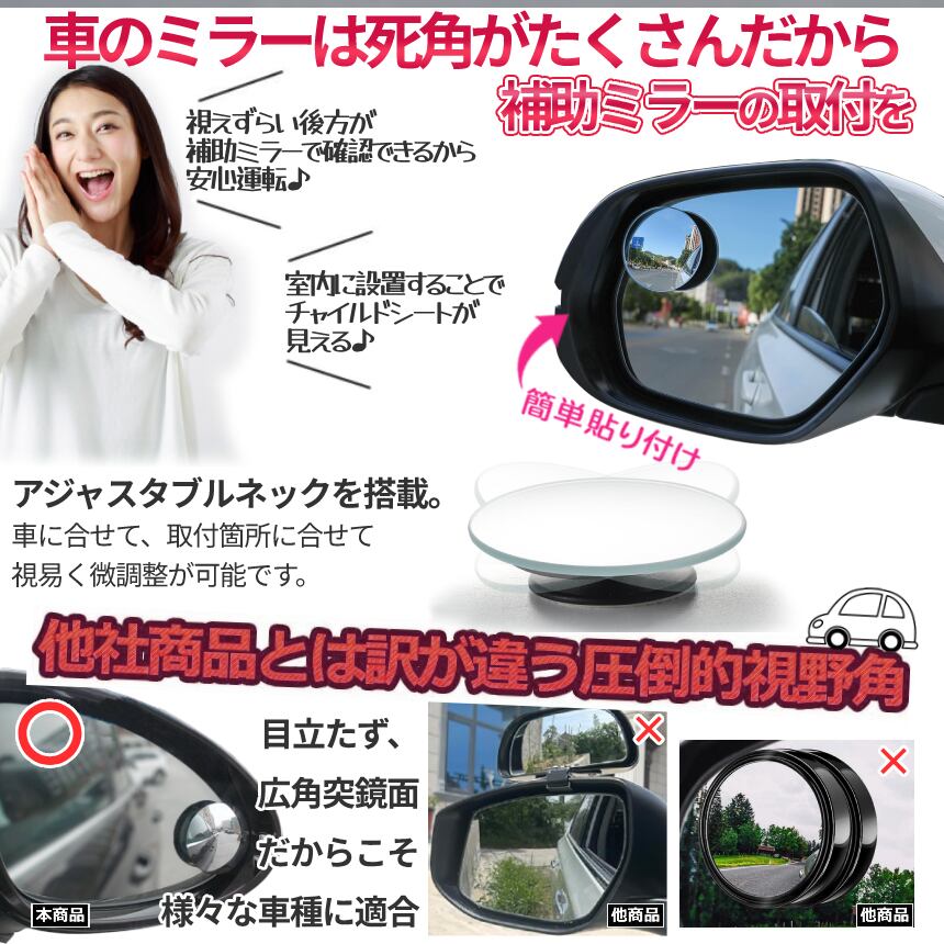 車用 補助ミラー 丸型 2個セット 自動車 死角 360度 角度調節 ドアミラー 視野拡大 事故防止 バック サブミラー 事故 防止 駐車 鏡 運転 バックミラー MARUMIRA